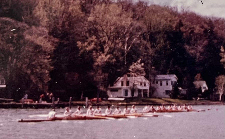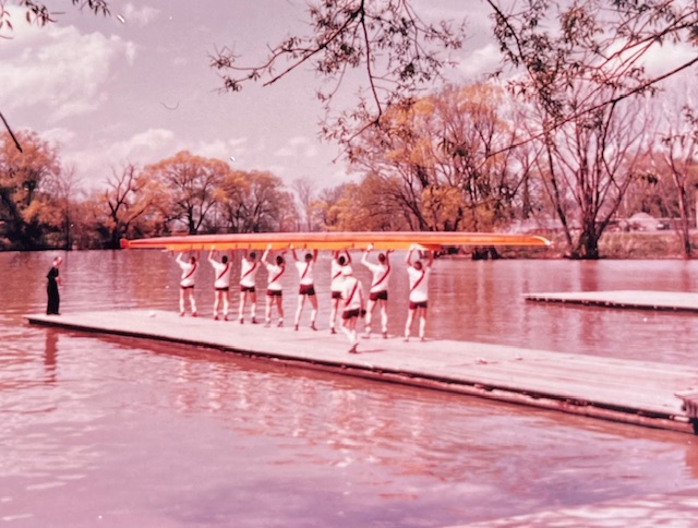 Eventually spring emerged and we went back on the lake with an occasional thin sheet of ice delicately cracking on the side of the shell. Then came spring vacation, where practically everybody left the campus, but the crews were told we would stay on campus and row for mile after mile in the morning and afternoon to harden up for competition.