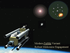 There was one very serious U.S. directed energy program and that was the development of a nuclear explosion driven X-ray laser, but we were not the first to consider such nuclear powered weapons. The Soviets claimed that a “nuclear explosion creates a stream of metallic fragments of small mass that travel at more than 10 kilometers per second, and are capable of string targets in space, including warheads, with a direct hit. One underground test showed the potential plausibility of accelerating a small mass to high speeds.”